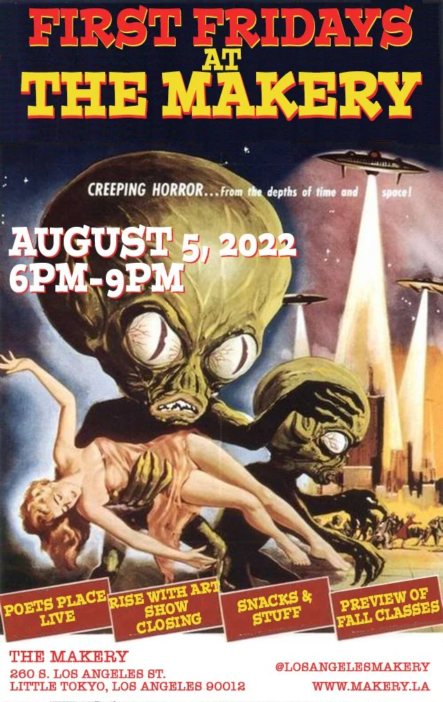 It’s our first First Friday at The Makery. Poet's Place will be live hosted by Linda Kaye! And we’ll be closing our current show, Rise With Art. Grab a bite to eat and check out our fall class preview. Come see art, hear poetry, and hang out for good times!